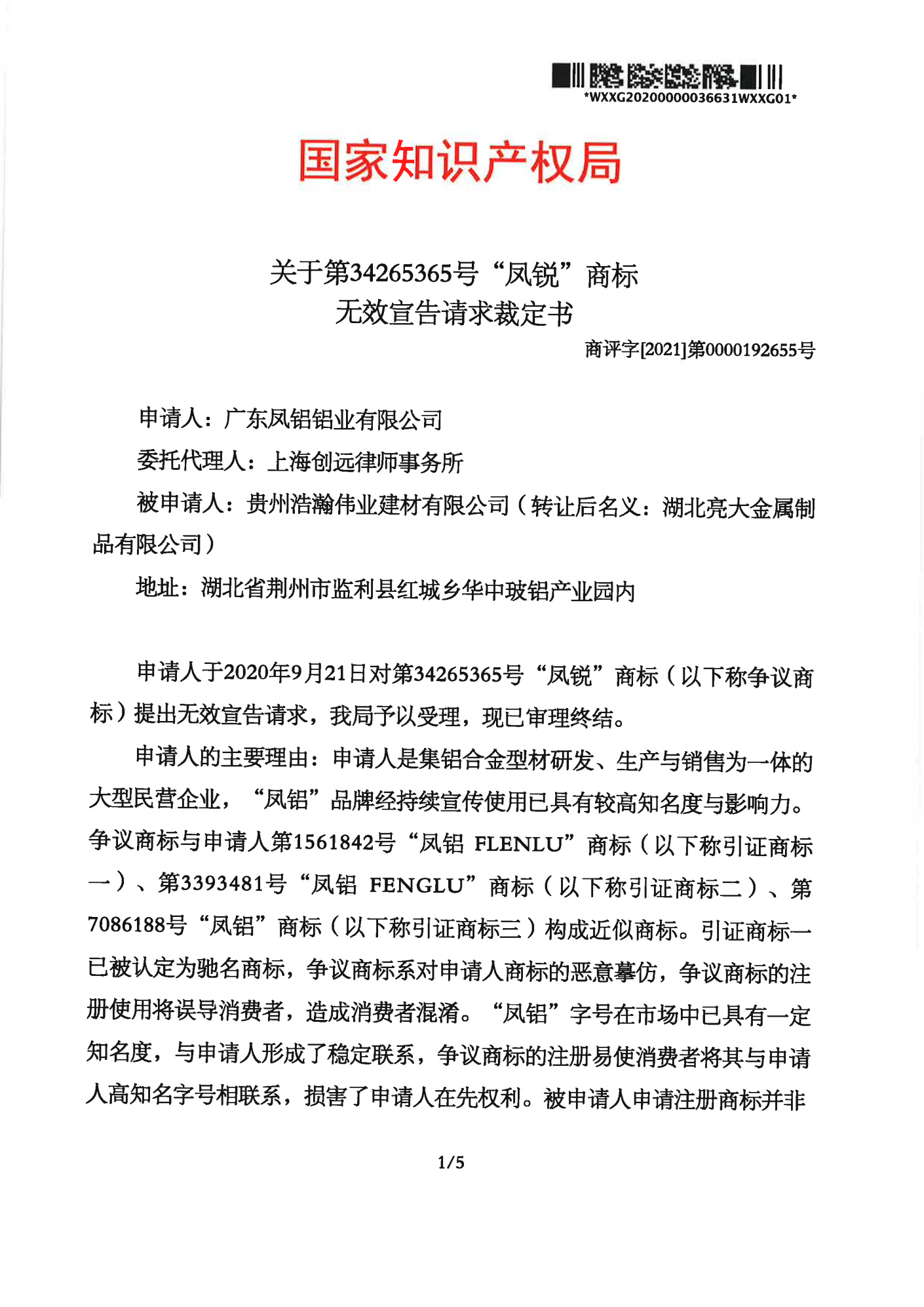 巢湖辉知队 | 国家知识产权局:“凤锐”商标无效